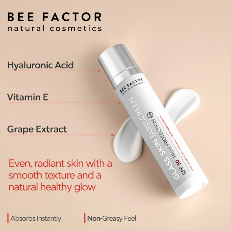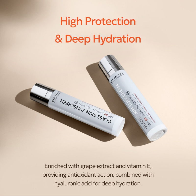 Glass Skin Sunscreen SPF50 is an advanced facial sunscreen that combines high-level sun protection with active skincare benefits. Designed for everyday use, it effectively protects against UVA and UVB radiation while enhancing skin hydration and radiance.
