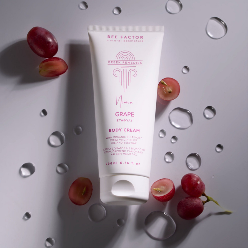Grape Revitalizing Body Cream from the Greek Remedies line draws its power from Greek grape extract sourced from Nemea, Corinthia—a region renowned for its antioxidant-rich vineyards.
