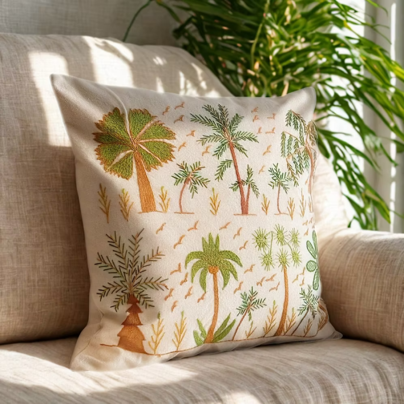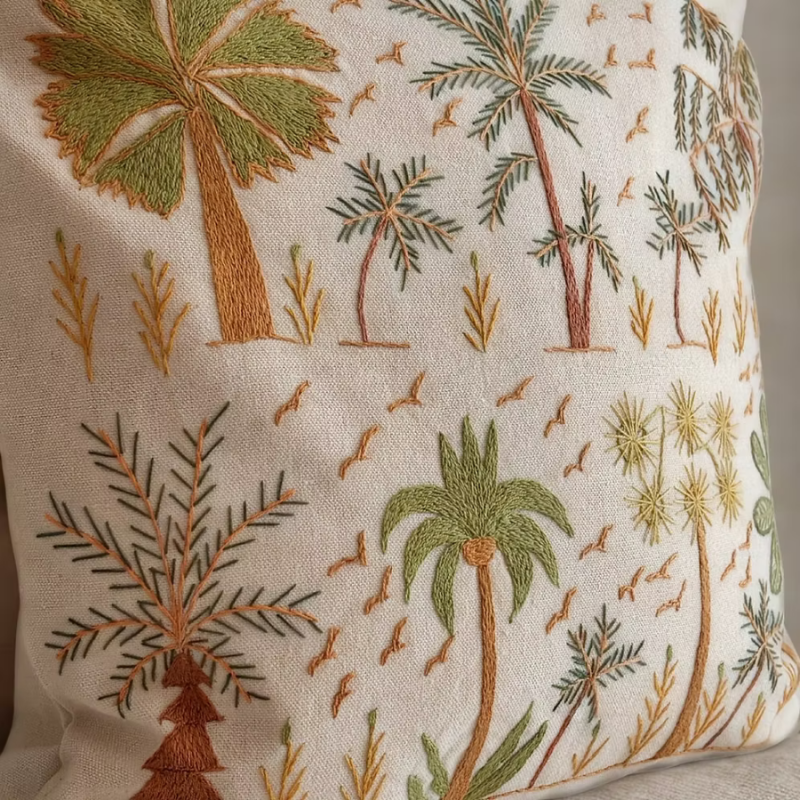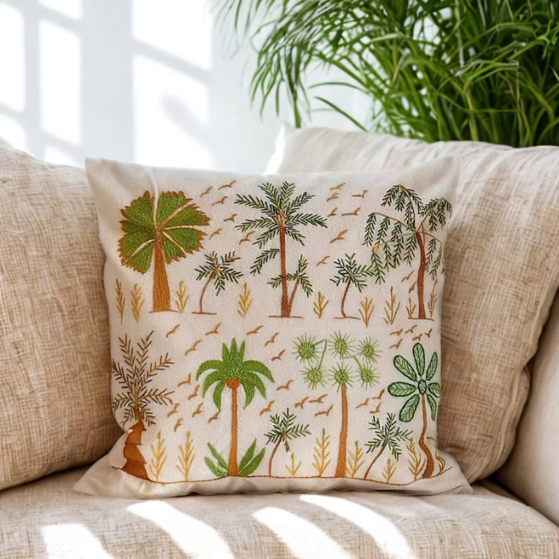 This handmade embroidered cushion cover is part of our Threads of Hope collection, a collection crafted by local Egyptian women artisans using 100% ethically sourced Egyptian cotton. Each piece is carefully made by hand, no two are exactly alike featuring village-inspired embroidery that reflects generations of heritage and skilled craftsmanship.
