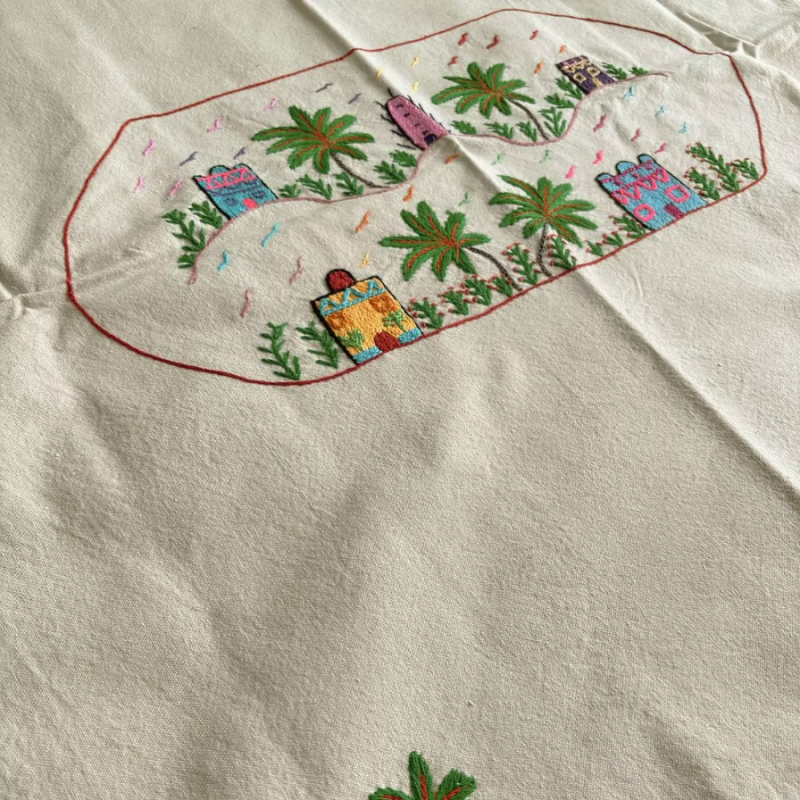 This handmade embroidered tablecloth is part of our Threads of Hope collection, a collection crafted by local Egyptian women artisans using 100% ethically sourced Egyptian cotton. Each piece is carefully made by hand, no two are exactly alike featuring village-inspired embroidery that reflects generations of heritage and skilled craftsmanship.