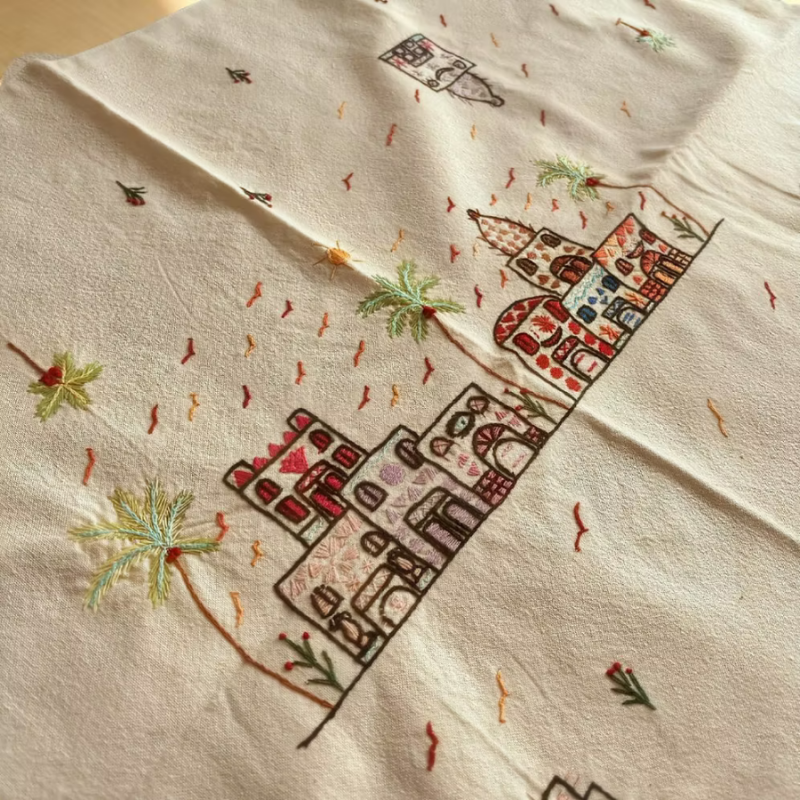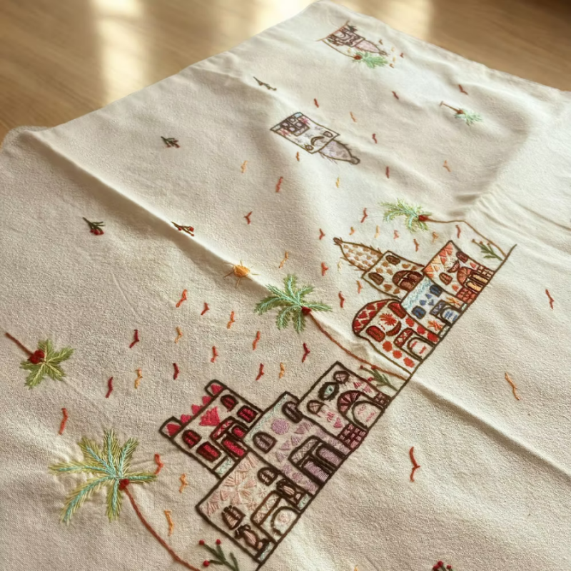 This handmade embroidered tablecloth is part of our Threads of Hope collection, a collection crafted by local Egyptian women artisans using 100% ethically sourced Egyptian cotton. Each piece is carefully made by hand, no two are exactly alike featuring village-inspired embroidery that reflects generations of heritage and skilled craftsmanship.