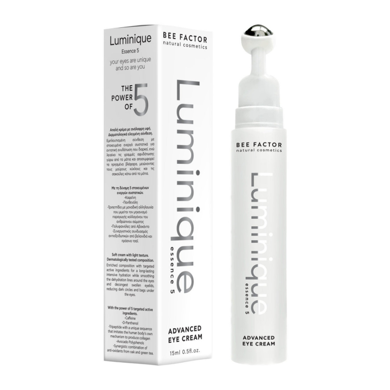 Luminique™ Essence 5 is a targeted eye treatment focused exactly where signs of fatigue appear first. It combines carefully selected active ingredients with an ergonomic metal roller applicator, delivering an instant cooling sensation, decongestion and enhanced microcirculation.