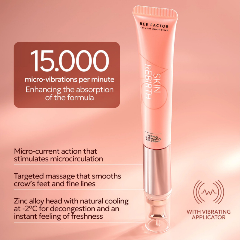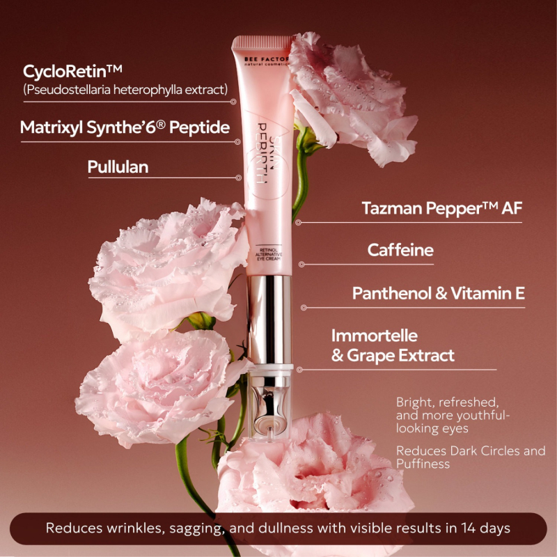 Skin Rebirth is a targeted eye treatment that blends advanced cosmetic technology with a professional spa-like experience. Its formula delivers retinol-like benefits without the typical irritation, making it suitable even for the delicate eye area.