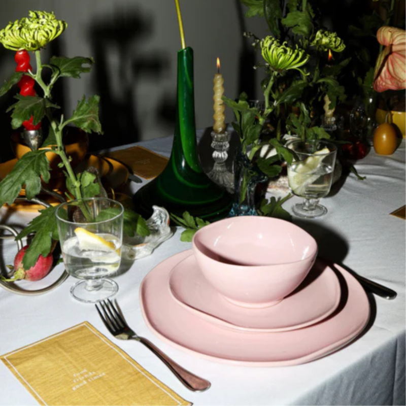 A playful yet soft way to set the table, this set of 6 Soft Pink salad plates are meant to transform the beauty and majesty of nature reflected in sunsets to your table.